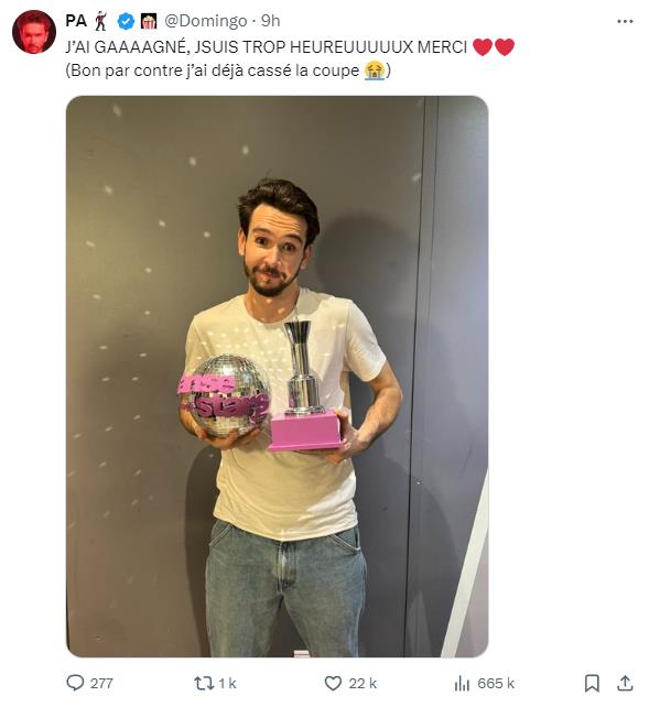 Domingo a été très heureux de remporter la victoire, mais a malheureusement cassé le trophée en deux comme il l’a rapidement montré sur ses réseaux sociaux. Enfin, nous vous rappelons que six candidats participaient à l’émission et