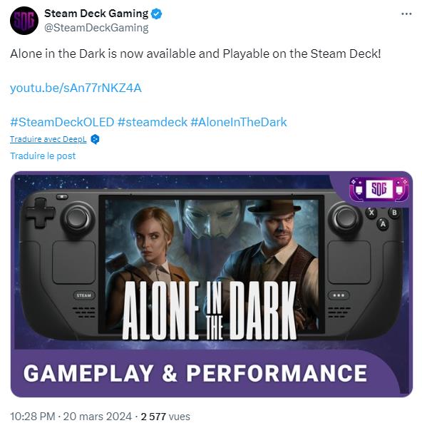 console. Nous vous rappelons au passage que Steam travaille à proposer de nombreux jeux compatibles avec le Steam Deck et pour savoir si Alone in the Dark est jouable sur la