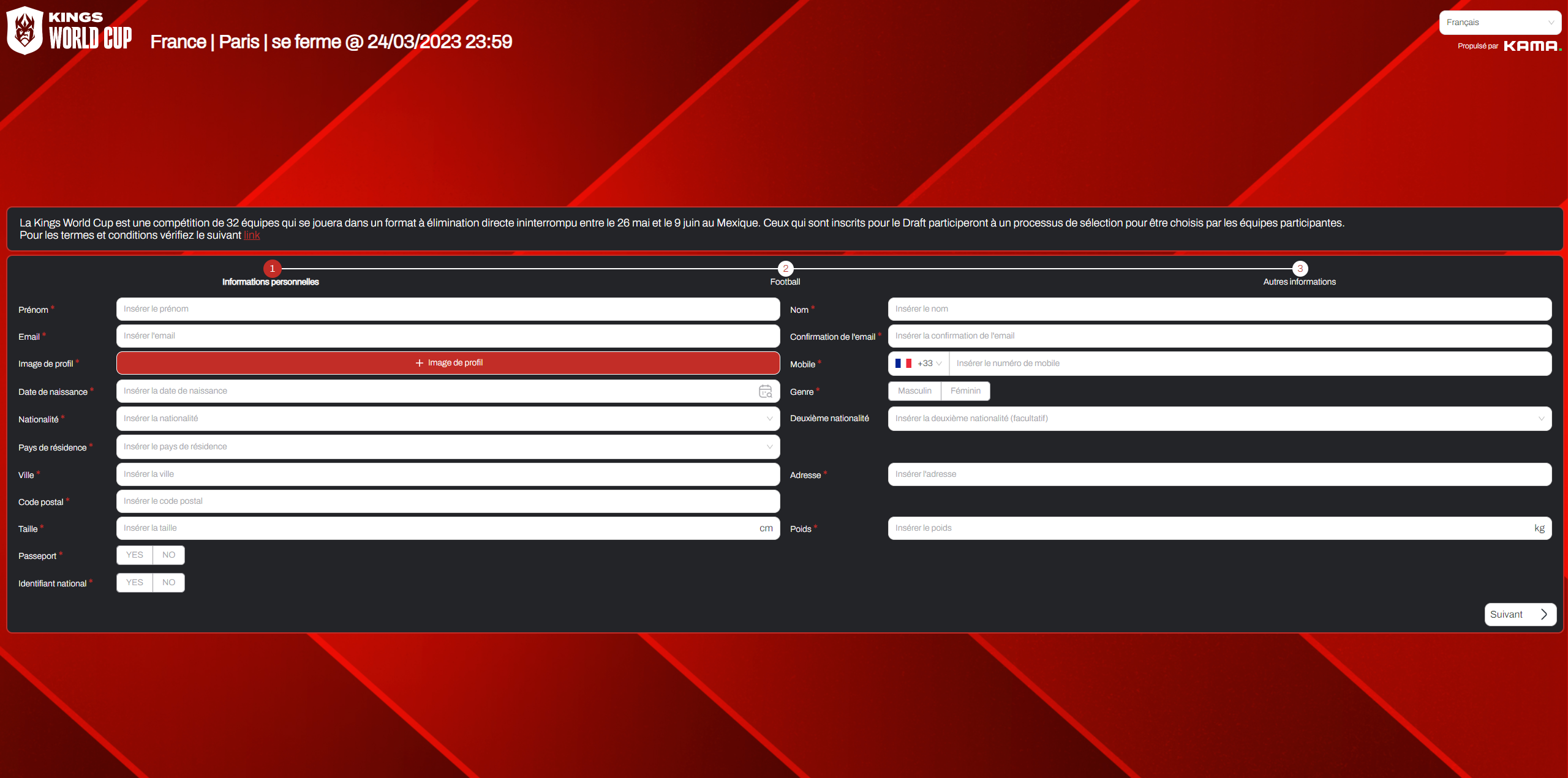 Amine doit constituer l’équipe qui représente la France et cela passe par des inscriptions pour faire partie de la sélection. Pour avoir une chance d’être sélectionné, vous allez devoir