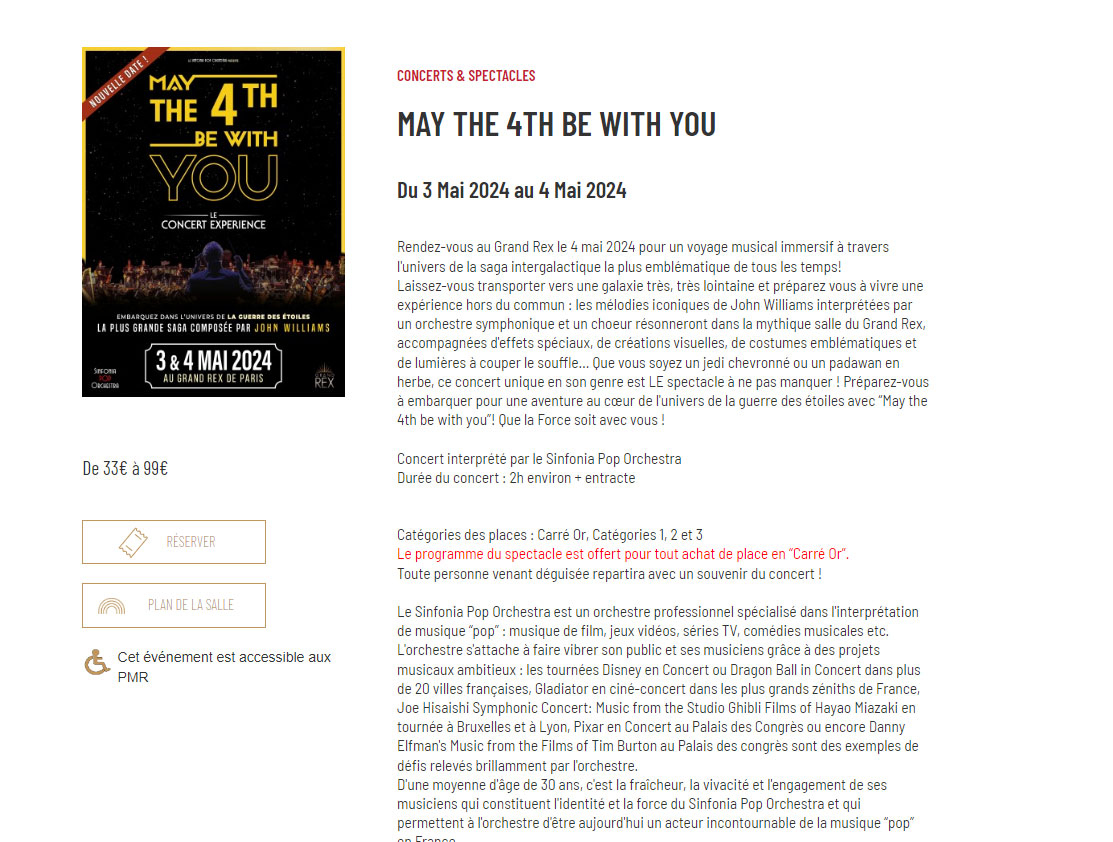 attentifs aux annonces à venir pour sécuriser votre place à cet événement intergalactique qui promet d’être gravé dans les annales du cinéma parisien. Que la Force soit avec vous, toujours.