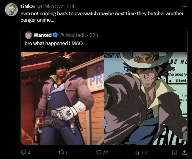 La position des pros : LiNkzr, ancien joueur professionnel d’Overwatch, exprime sa déception face à cette collaboration, suggérant que le design manque de respect à l’égard de l’anime.