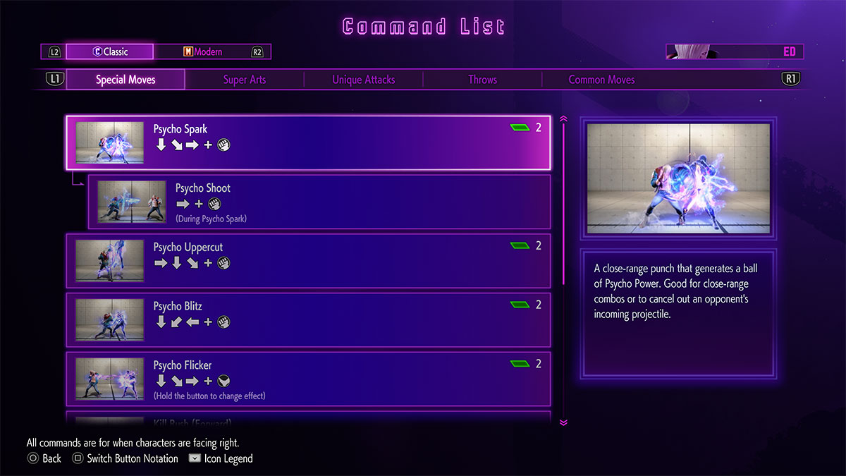 - Psycho Storm et Psycho Cannon : Des Super Arts de niveaux 1 et 2, respectivement, offrant des stratégies offensives puissantes.