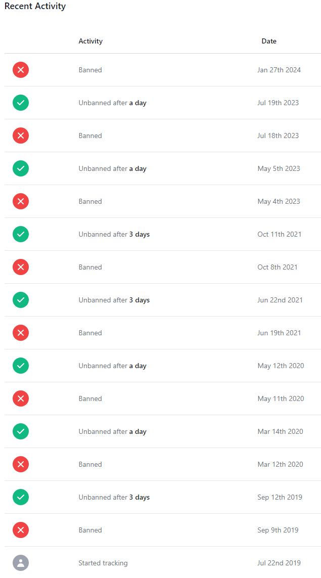. Ce nouveau ban est son 8e, mais aussi le premier de 2024. À l’heure actuelle, nous ne connaissons pas encore la durée de son bannissement,