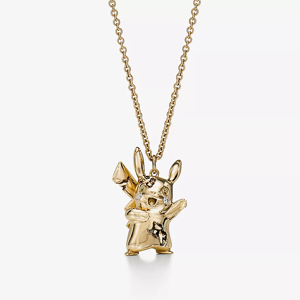 Le clou de cette collection est sans aucun doute le pendentif Pikachu, disponible en deux tailles. Le plus petit, en or jaune 18 carats et diamants, est proposé à environ 9,900 $, tandis que le