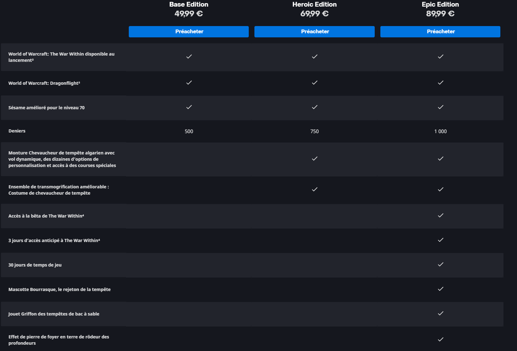 WoW The War Within : Édition Collector, épique, héroïque et de base