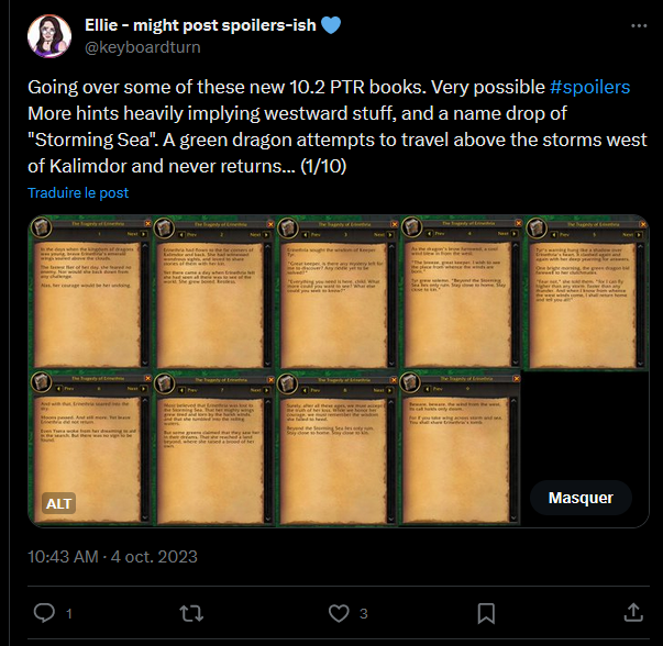 • Des nouveaux textes sur le PTR font aussi référence à un Dragon vert qui va au delà des tempêtes à l’ouest et ne revient jamais ! Le thread d’Ellie est assez détaillé à ce sujet