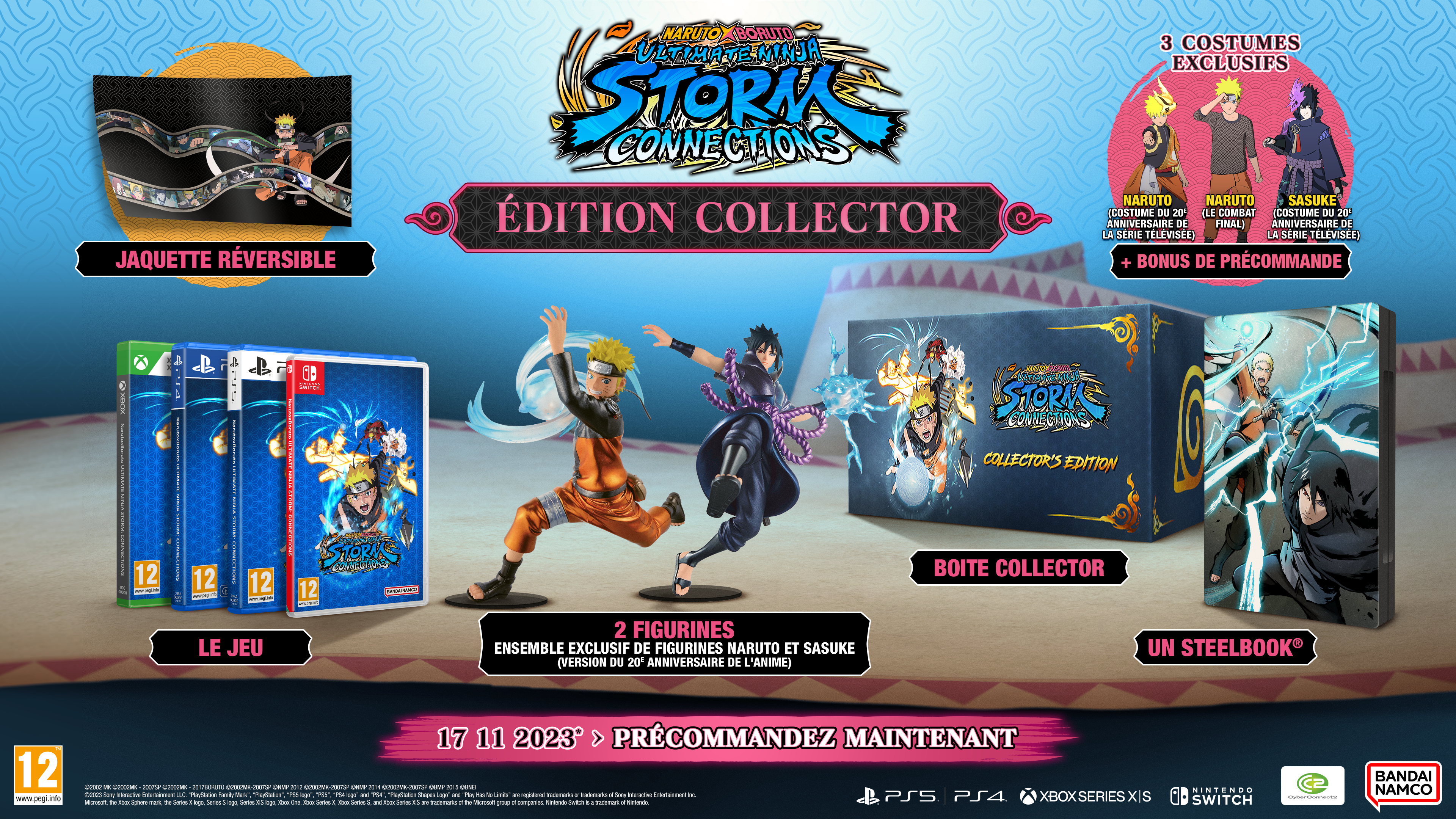 Toutes les éditions incluent des tenues bonus pour ceux qui précommandent : une tenue commémorative des 20 ans de l’anime pour Naruto Uzumaki et Sasuke Uchiwa, et la tenue Naruto Uzumaki (Ultime