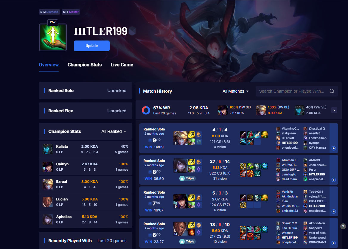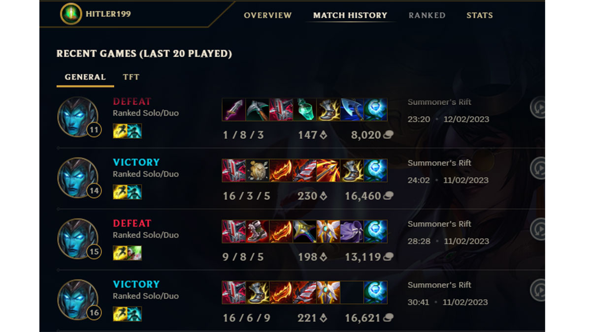 outre, les données de u.gg montrent que ce compte a été actif il y a seulement deux mois.
