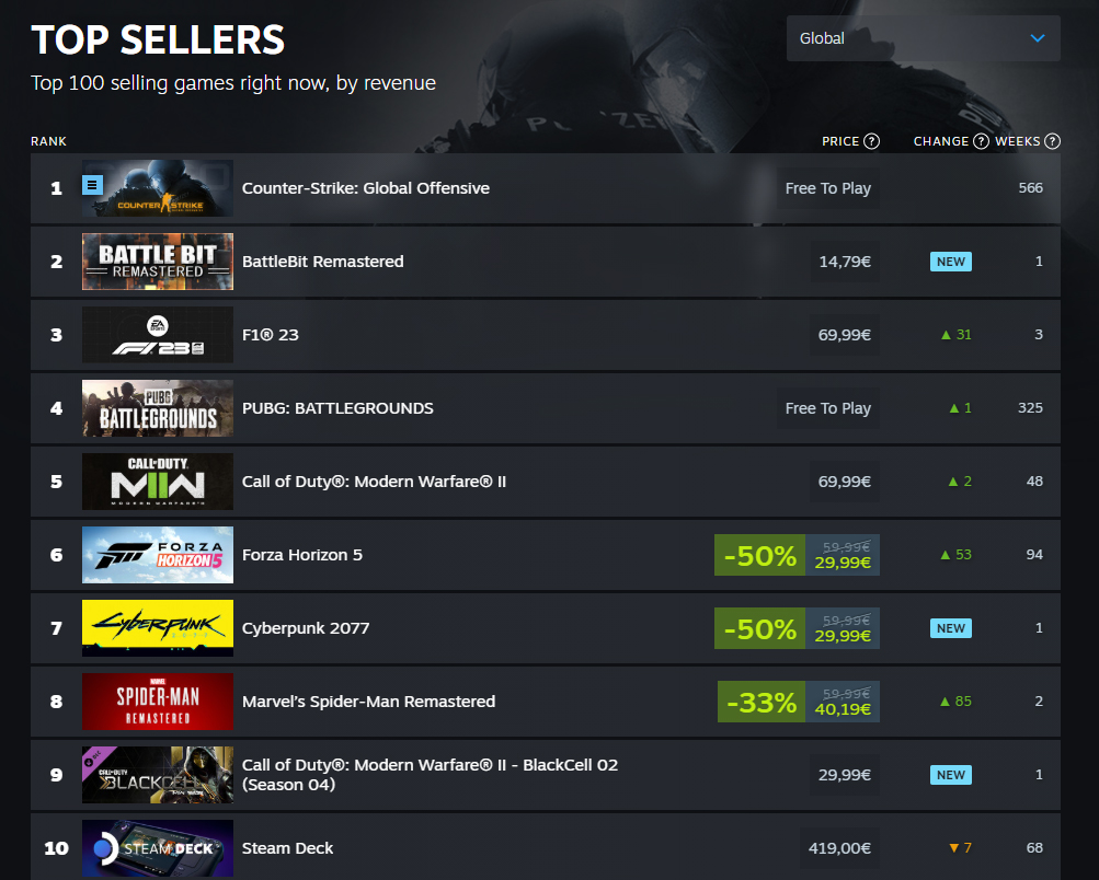 travail acharné et leur dévouement ont porté leurs fruits, car le jeu se classe désormais parmi les jeux les plus vendus sur Steam, devant des titres phares tels que Warzone