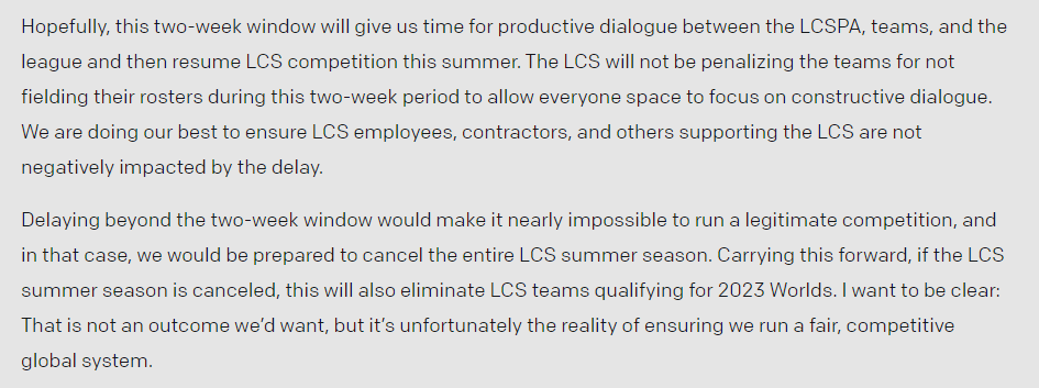 — LCS Players Association (@NALCSPA) May 31, 2023