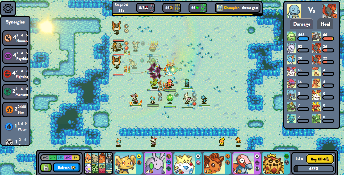 Inspiré par le concept du célèbre TFT, ce jeu présente une approche unique du combat Pokémon. Malgré son aspect sommaire dû à son caractère fan-made, il a réussi à capter l’attention d’une