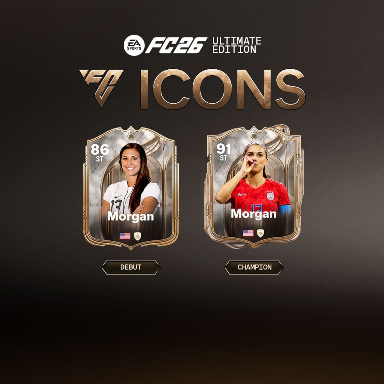 Icône incontournable du football féminin, Alex Morgan fait son entrée dans FUT avec deux cartes notées 86 et 91.