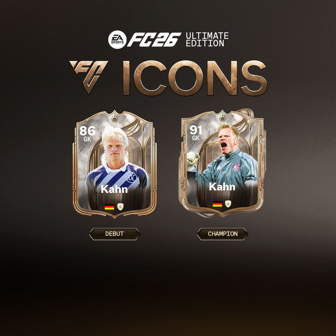 Gardien emblématique du Bayern et Ballon d’or 2002, Kahn s’impose avec des cartes 86 et 91. Six Coupes