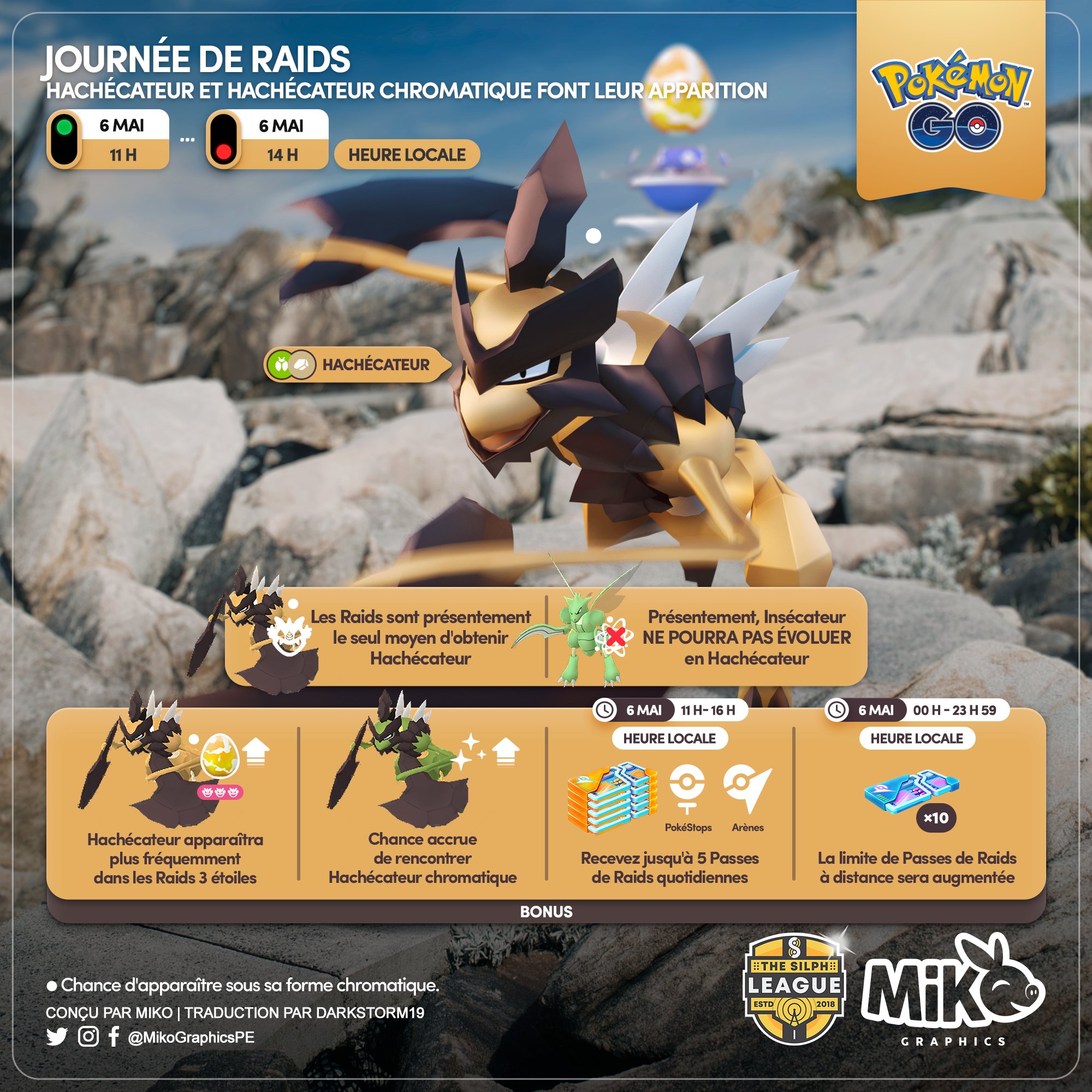 Durant cet événement, Hachécateur apparaîtra plus fréquemment dans les Raids trois étoiles. Si la chance est de votre côté, vous pourrez même rencontrer un Hachécateur chromatique