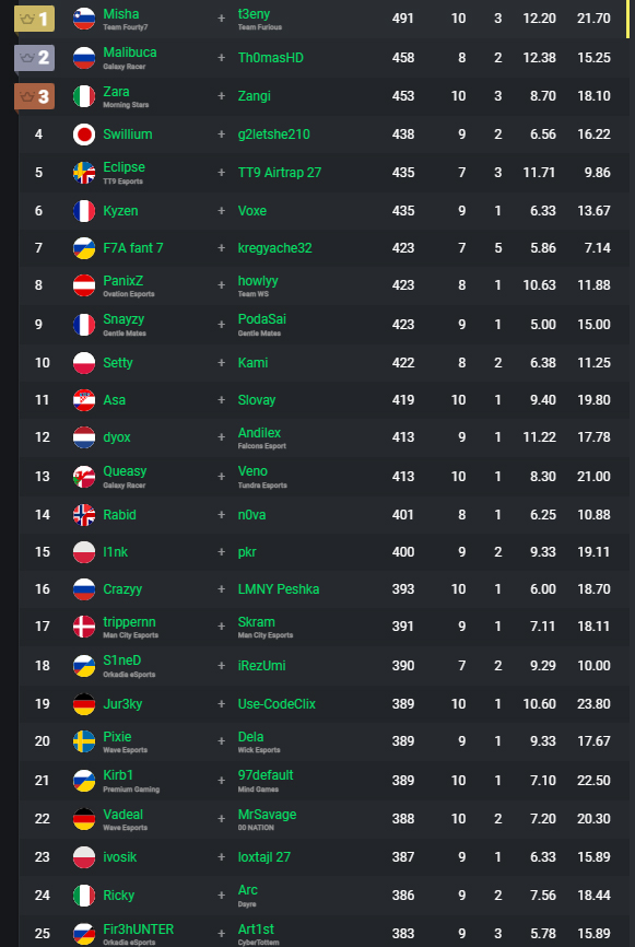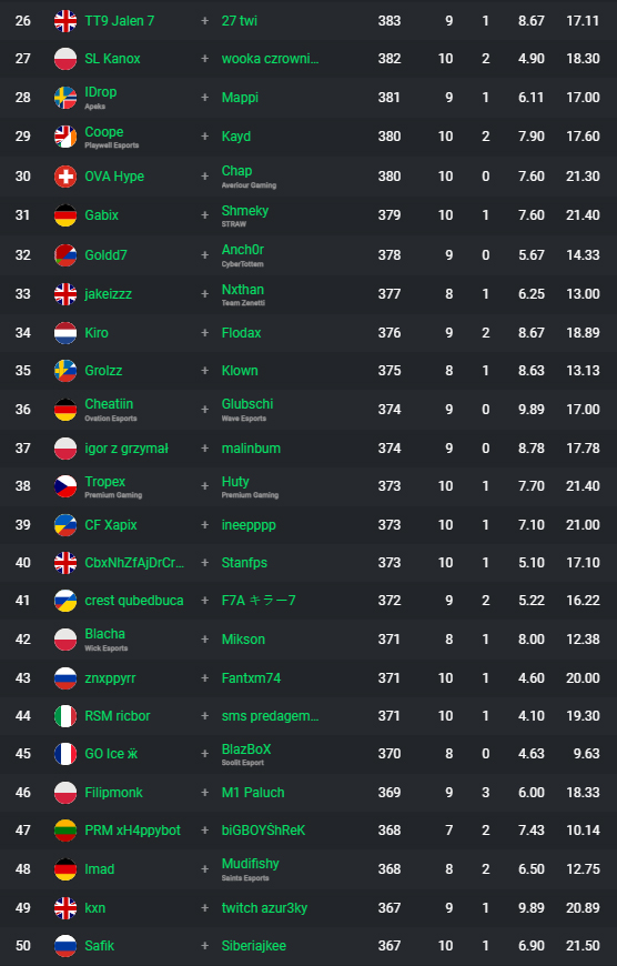 Voici le top 10, pour connaître le reste du classement, vous pouvez vous rendre sur le site Fortnite Tracker (source). Seuls ces 10 duos se qualifient pour les Grandes