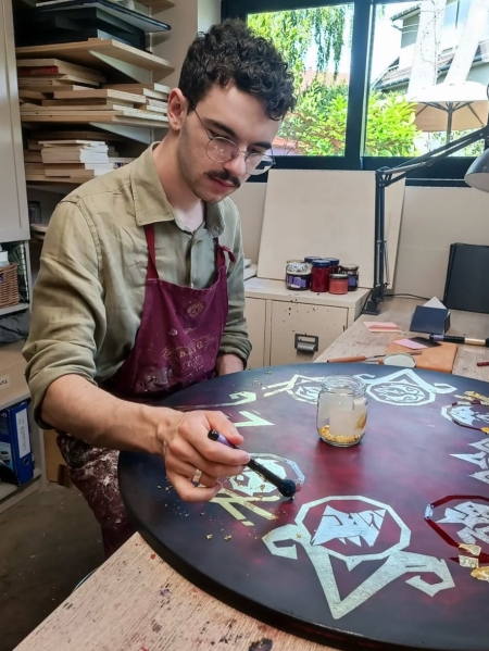 Clément Peltereau-Villeneuve en train de travailler sur son œuvre pour la Teyvat Expot – source : Instagram