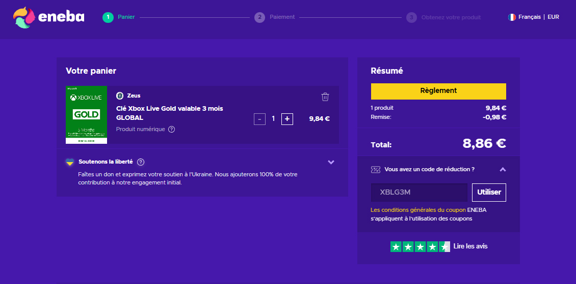 La première et principale raison d’acheter l’abonnement Xbox Live Gold de 3 mois sur Eneba, c’est tout d’abord parce que la carte est au petit prix de 9.51 € avec le code