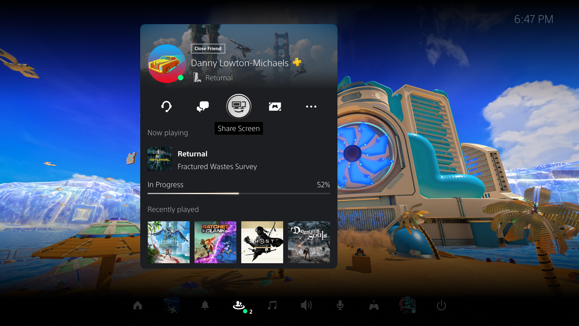 - Possibilité de partager votre écran et de demander un partage d’écran depuis votre console console PS5