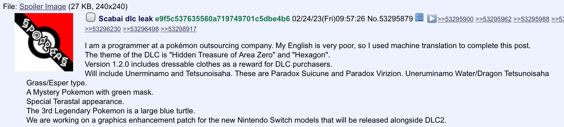 Selon la fuite d’information, la Nintendo Switch 2 sortirait en même temps que le « DLC 2 » de Pokémon Écarlate et Violet. Lors du Pokémon