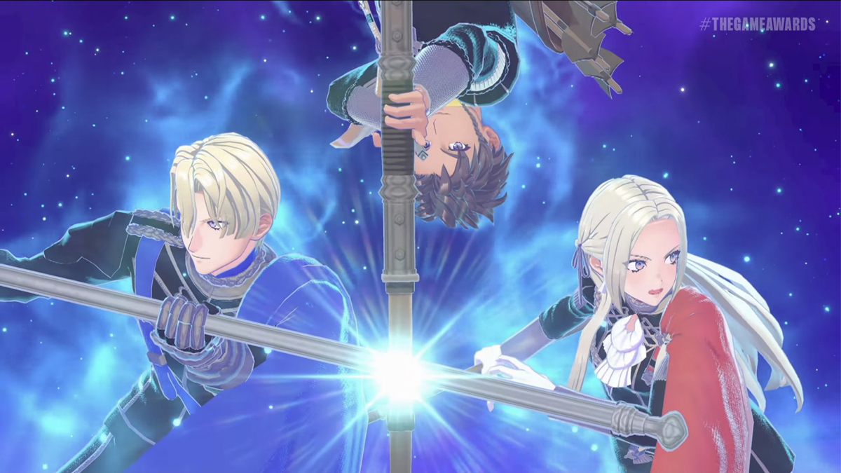 • Premier emblème représenté par les trois protagonistes de Fire Emblem Three Houses : Edelgard, Dimitri et Claude qui vous