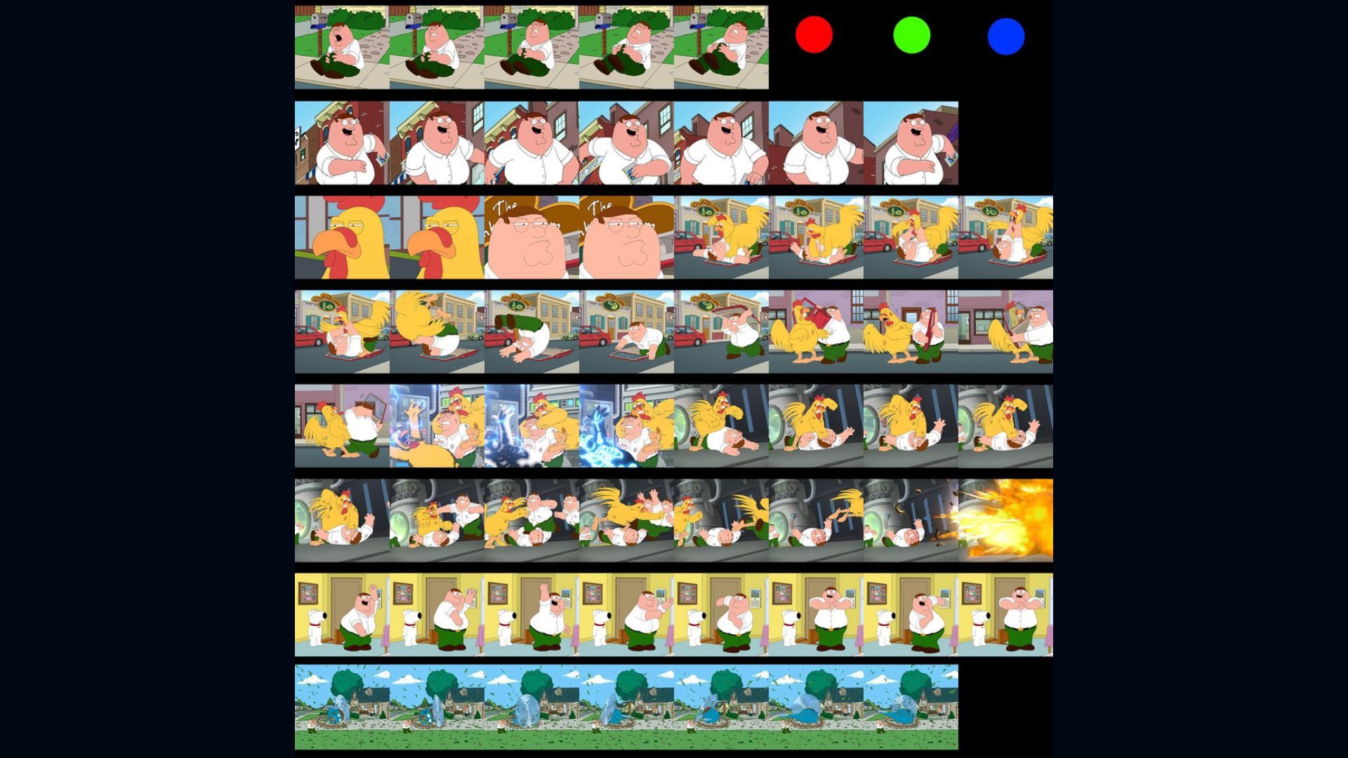 Ce dossier contenait des screens de la série d’un combat entre Peter et Ernie le poulet géant (un gag récurrent de la série), où le sang avait été