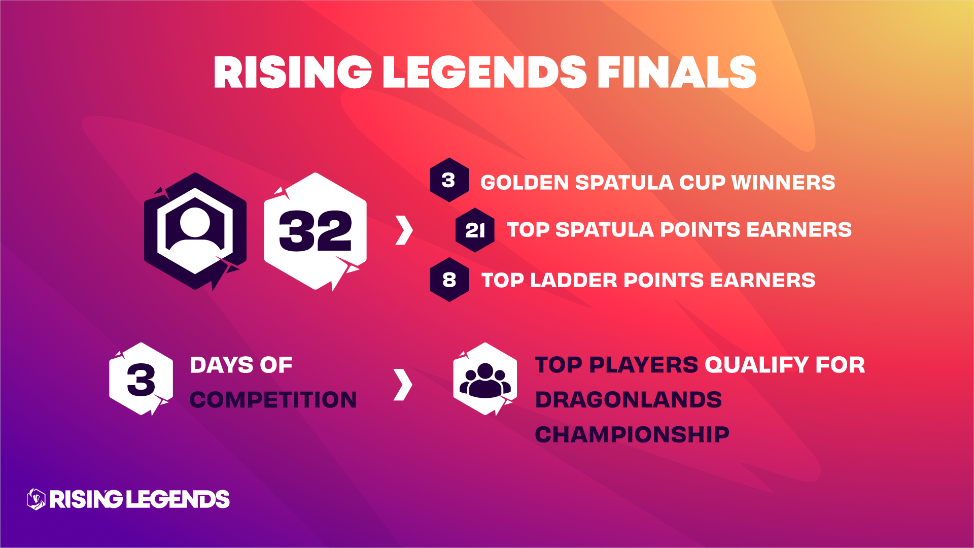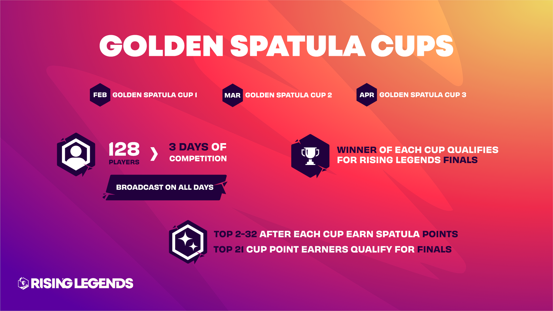 • Les vainqueurs et les joueurs ayant obtenu les meilleurs scores lors des Coupes Golden Spatula se qualifiant pour les phases Finales Rising Legends