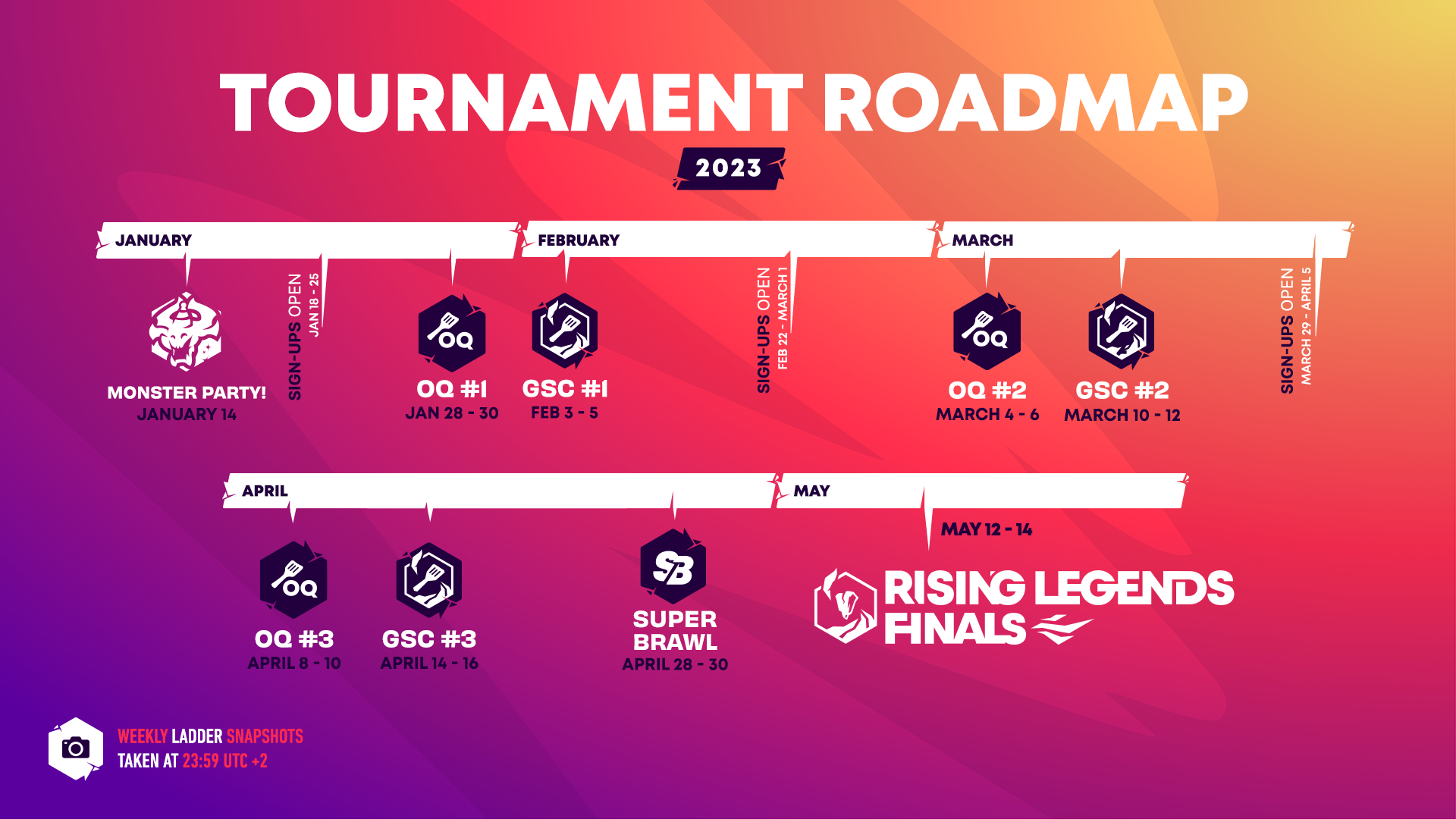 Comme lors de la saison précédente, les joueurs et les joueuses pourront se qualifier pour les Golden Spatula Cups grâce aux Open Qualifiers et aux Ladder Points.