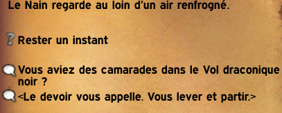 Vous lui demanderez ensuite « Vous aviez des camarades dans le Vol draconique noir ? »