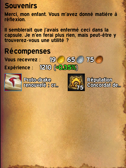 Vous y obtiendrez une crête pour le Proto-drake renouvelé.