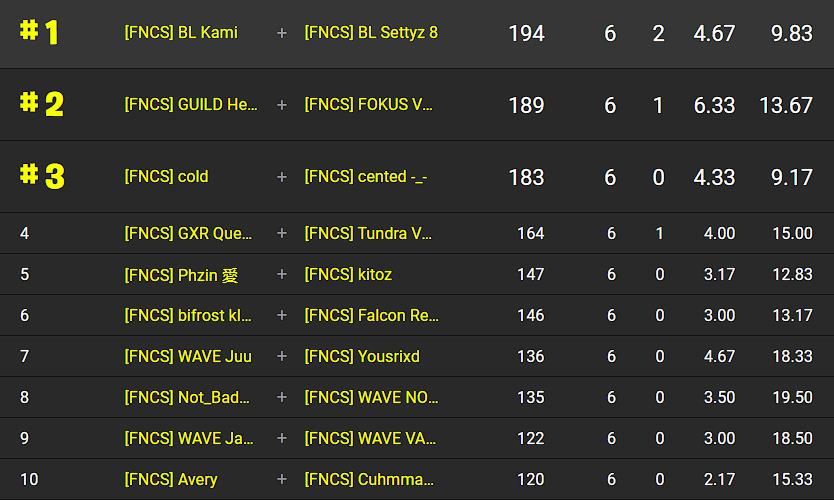 Classement FNCS Invitational, les résultats Fortnite en duo en Saison 4 Chapitre 3