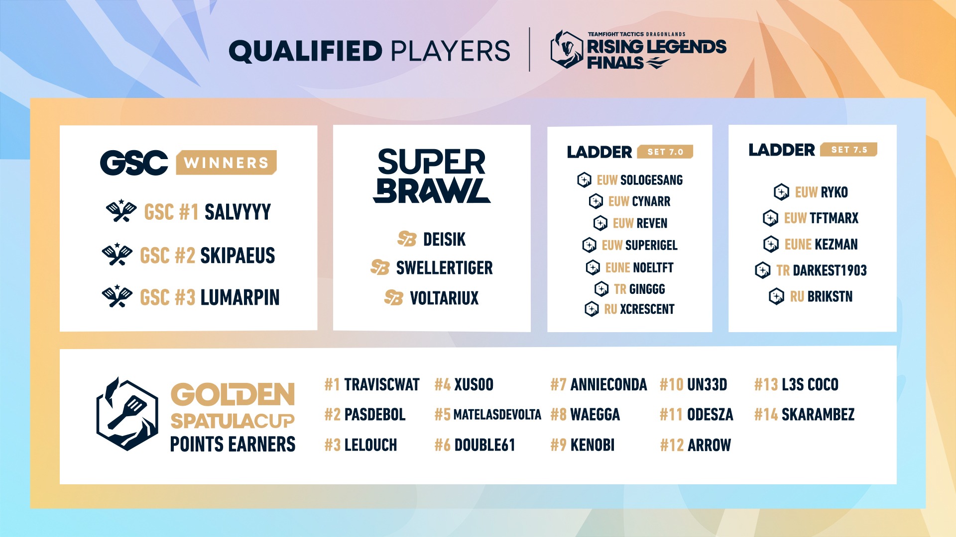 - Les cinq meilleurs joueurs à la fin du tournoi se qualifient pour le championnat du monde du Set 7.5 de TFT.