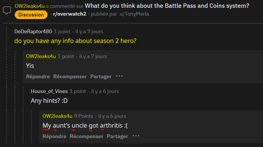 Cette information provient d’OW2leaks4u, un leaker d’Overwatch 2. L’information est assez importante car lors de ces derniers leaks, OW2leaks4u ne s’était pas trompé. Comme vous pouvez le voir sur