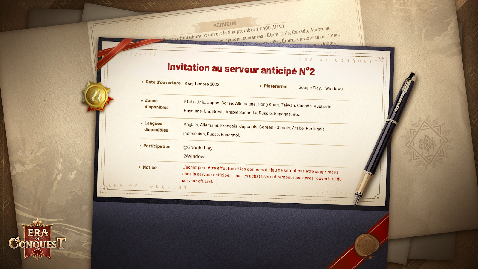 Dans cette bêta, Era of Conquest sera disponible en anglais, allemand, français, japonais, coréen, chinois, arabe, portugais, indonésien, russe et espagnol, afin