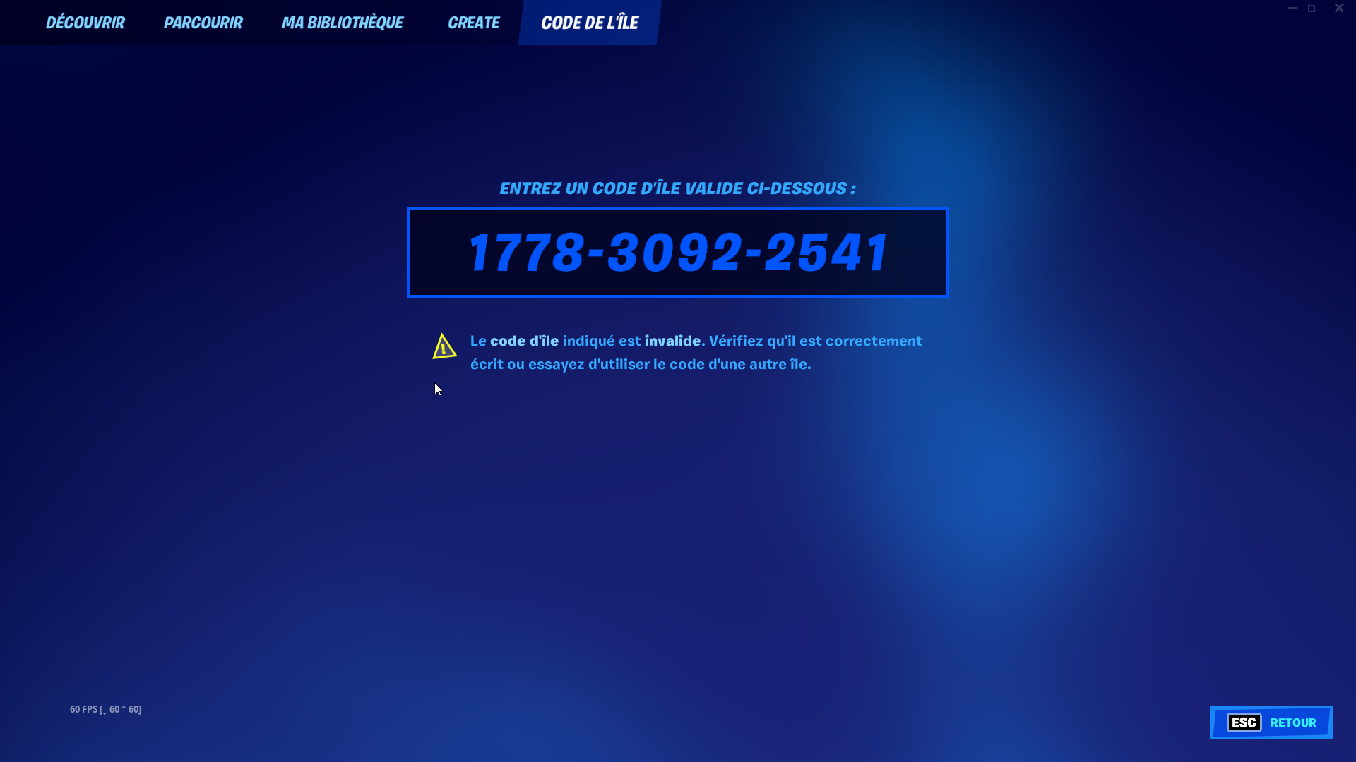Si vous utilisez le code de l’île dans le mode créatif, vous allez très certainement rencontrer un problème au début. En rentrant le code 1778-3092-2541,