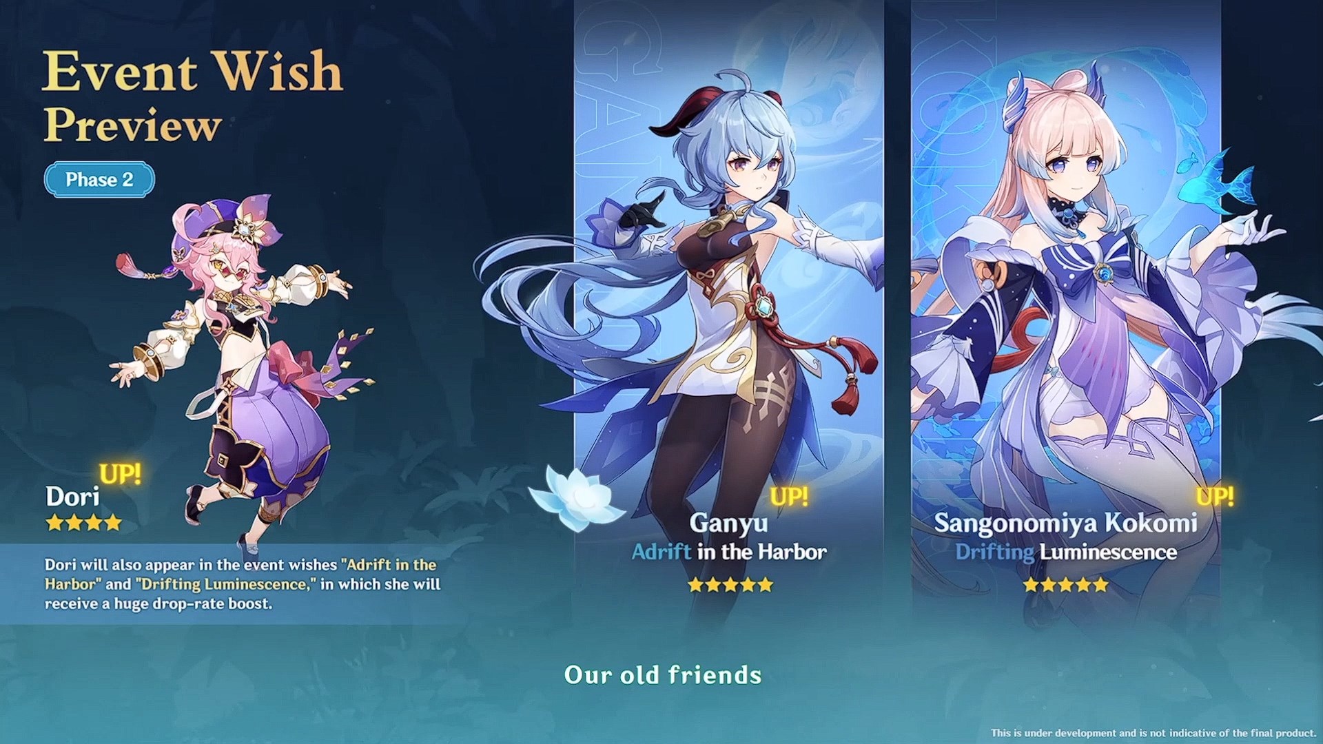 Quant à celles centrées sur Kokomi et Ganyu, elles sortiront en seconde et devraient être disponible à partir du mardi 13 septembre avec Dori à l’intérieur.