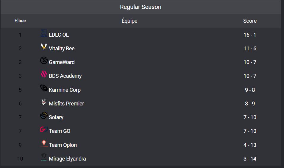 GamersOrigin quant à eux sont d’ores est déjà out en cas d’égalité dans leurs départages face à Misfts.