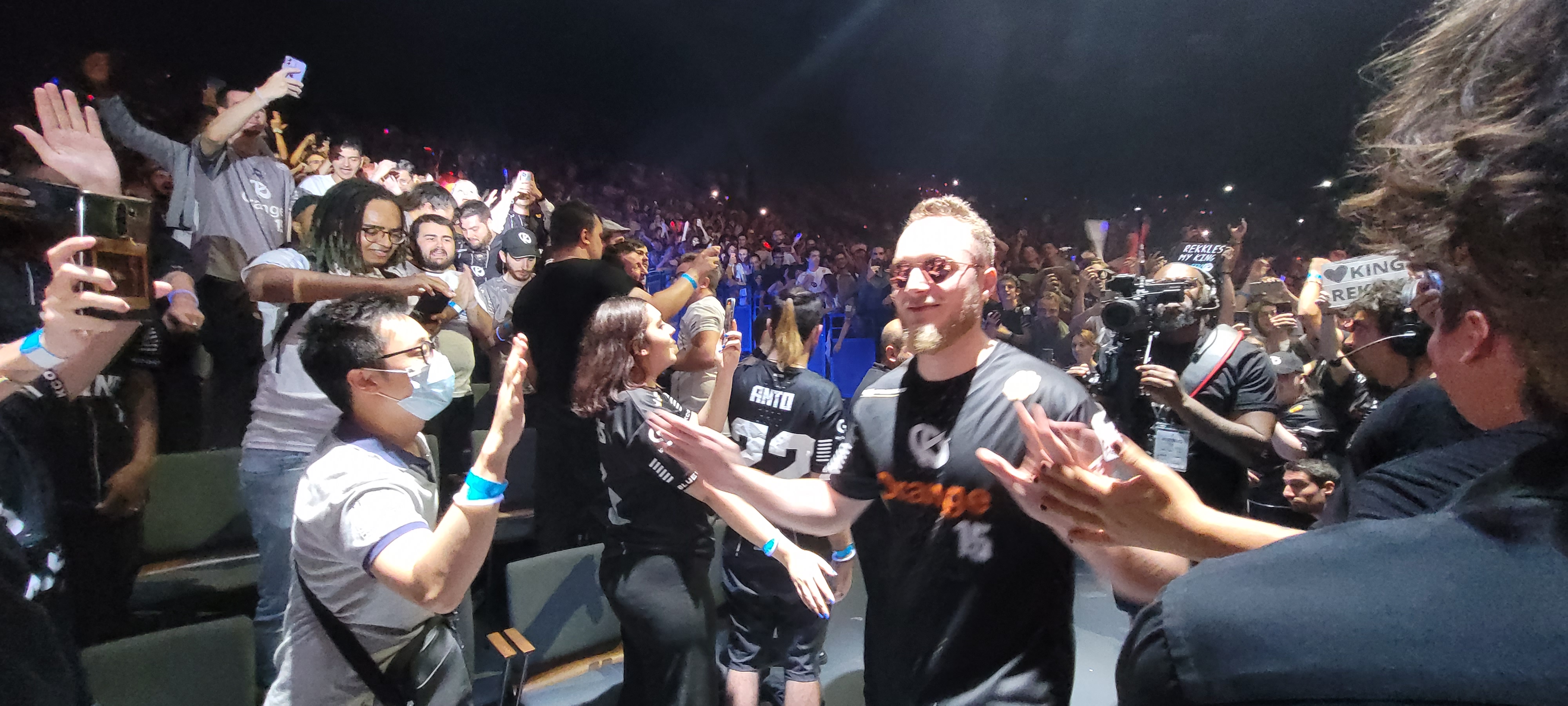deuxième event et cette fois, la Kcorp va gagner », prédit un jeune garçon de 19 ans, maillot Rekkles sur le dos, en pressant le pas à mesure qu’on aperçoit les drapeaux de son équipe.