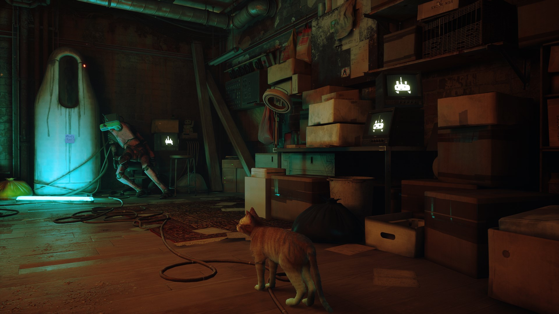 En plus des énigmes à résoudre, ce qui rend Stray merveilleux c’est son univers, très sombre et à la fois hyper coloré. Dans un monde très cyberpunk, les détails