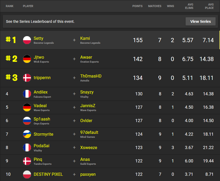 Classement FNCS semaine 2 saison 3, les résultats Fortnite du qualifier 2 en duo au Chapitre 3