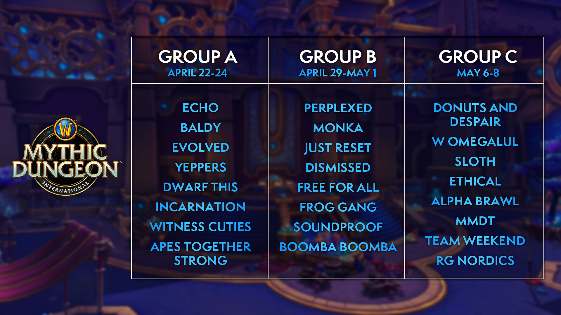 Retrouvez ci-dessous les groupes et les équipes qui participeront à cette saison 3 des MDI sur WoW.