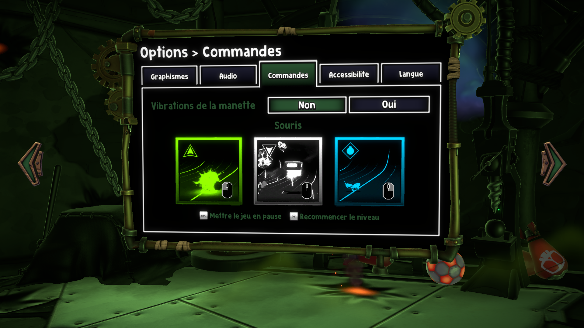 Vous pourrez retrouver les différentes commandes en allant vers la droite dans le menu principal du jeu.