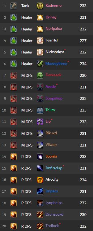 Limit a opté pour une composition à un seul tank avec Paladin et 5 healers.