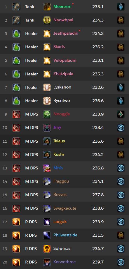 C’est Echo, une guilde EU, qui a obtenu le World First sur Gardien des Fondateurs. Retrouvez ci-dessous la composition que le groupe a utilisé pour vaincre le