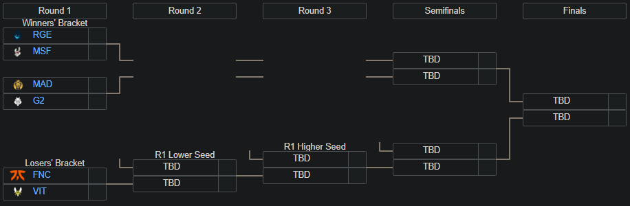 • Les équipes de la 1ère à la 4e place se qualifient directement pour le round 1 du winner bracket