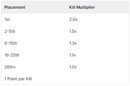 - Les équipes marqueront des points selon leur classement et les éliminations effectuées