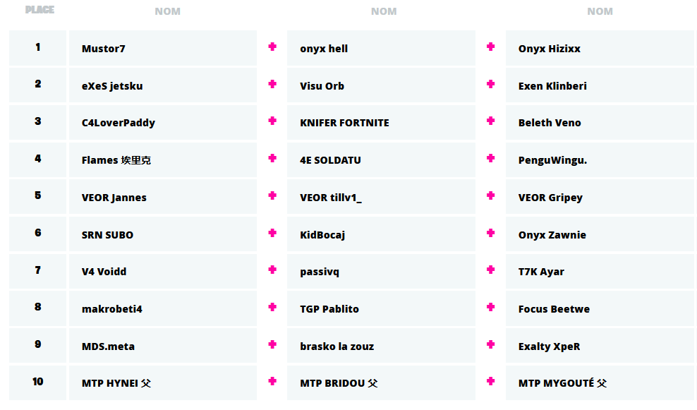 Heat Fortnite FNCS trio saison 5, liste des joueurs