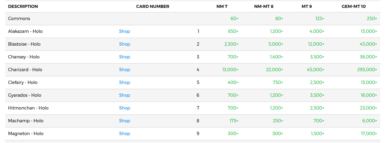 encore plus de rareté à la carte de Kameto ! Une carte de niveau NM 7 vaut au minimum 13 000 $ et une GEM-MT 10 vaut 295 000 $ par exemple !