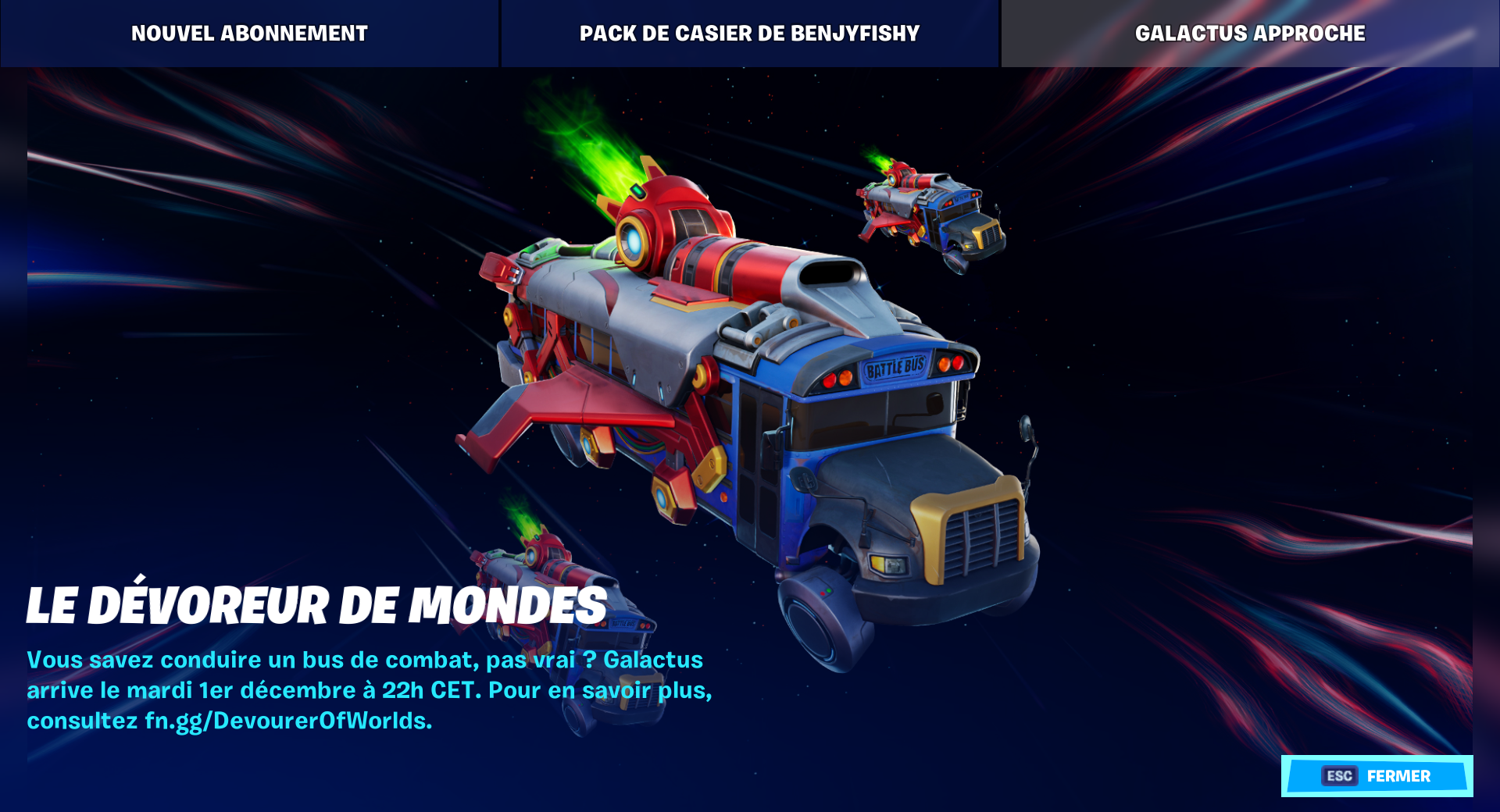 Cet événement, on ne sait que très peu de choses à son sujet ! Epic Games a simplement annoncé qu’il s’agirait du combat ultime contre Galactus, qui se rapproche actuellement de