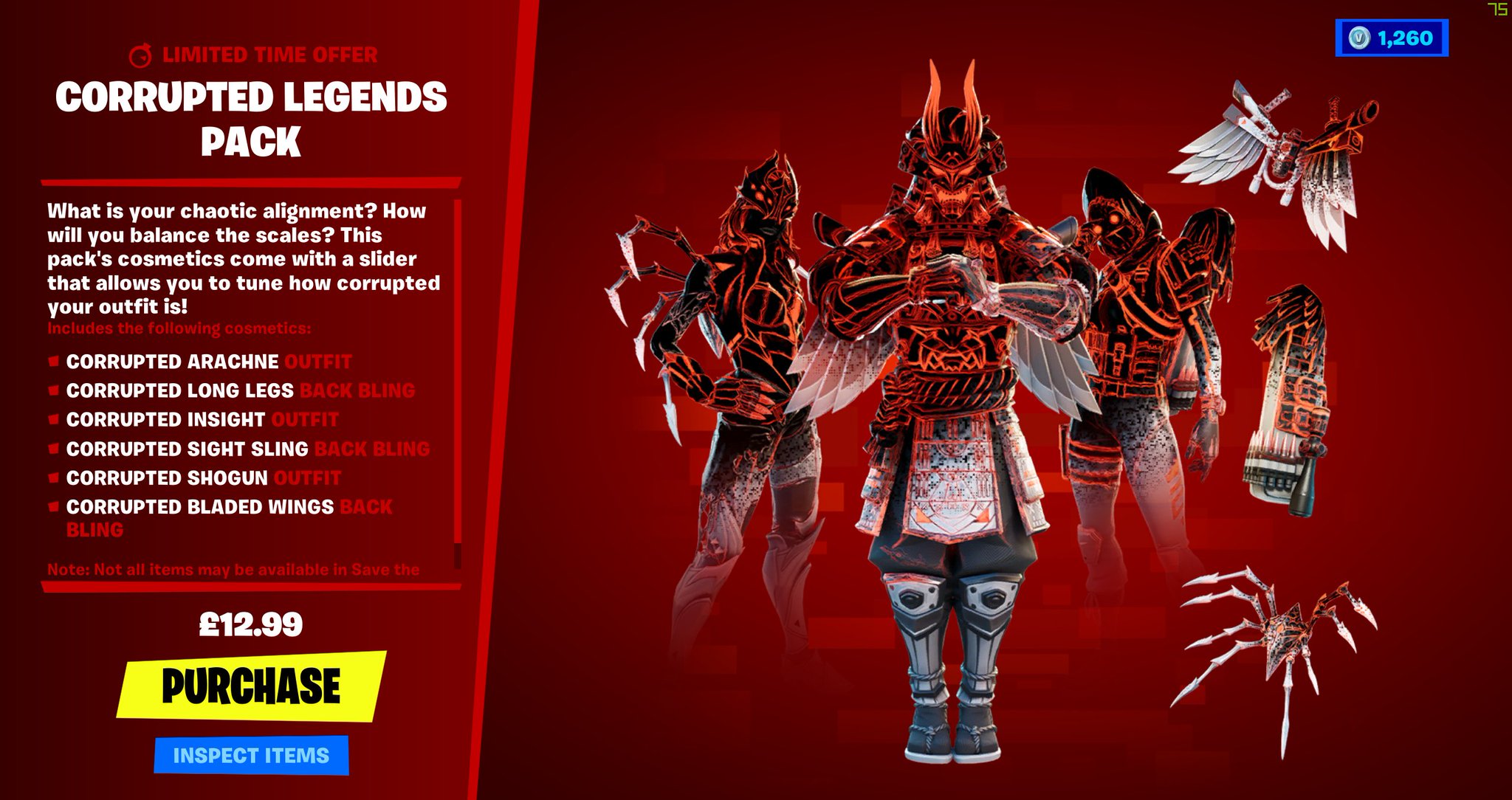Le prix du pack Corrupted Legends est de 12,99 livres sterling soit approximativement 16 euros en France. D’après les data-mineurs, ce pack devrait arriver dans