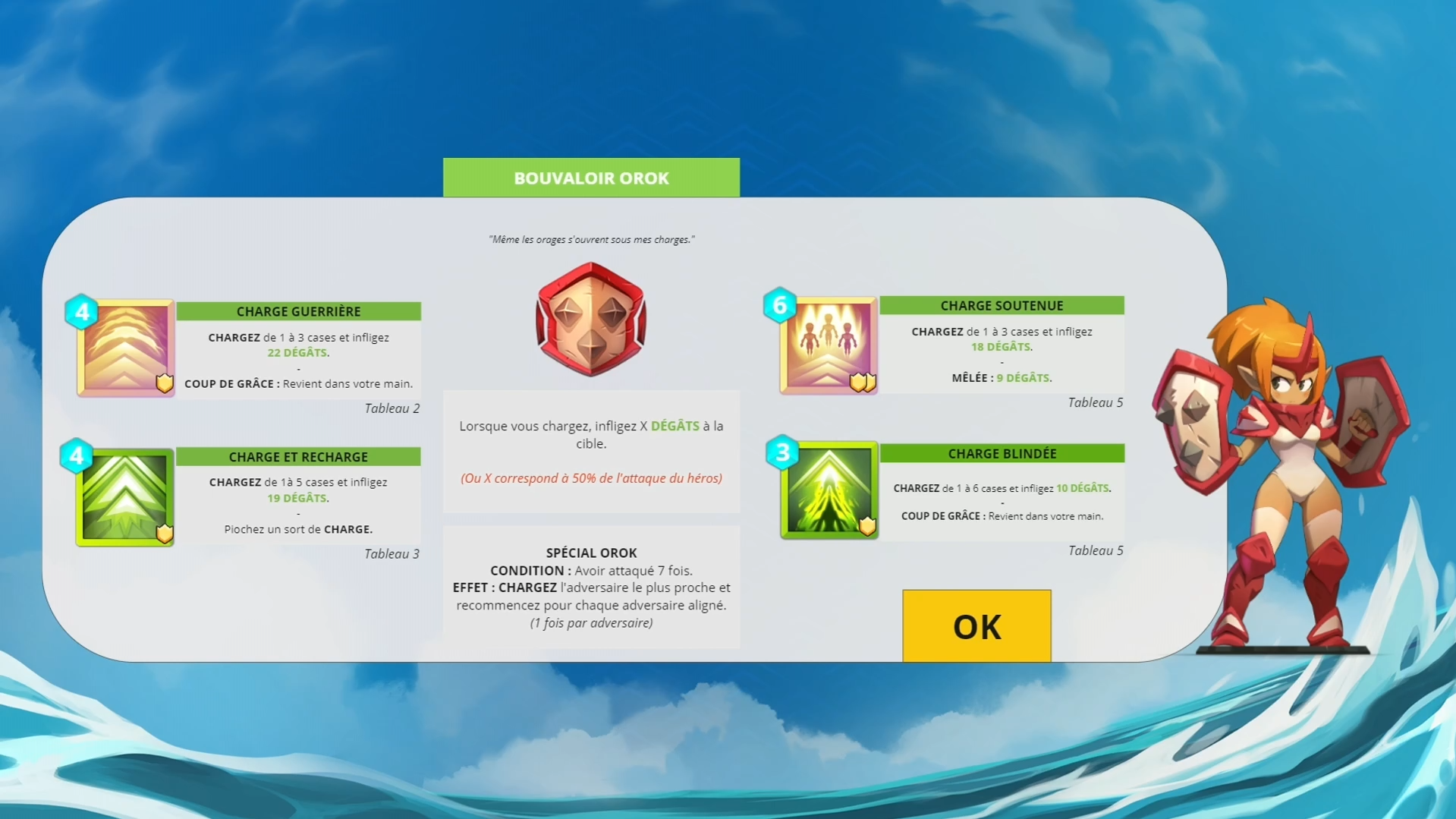 Une capacité spéciale (ultime), activable plusieurs fois par combat.